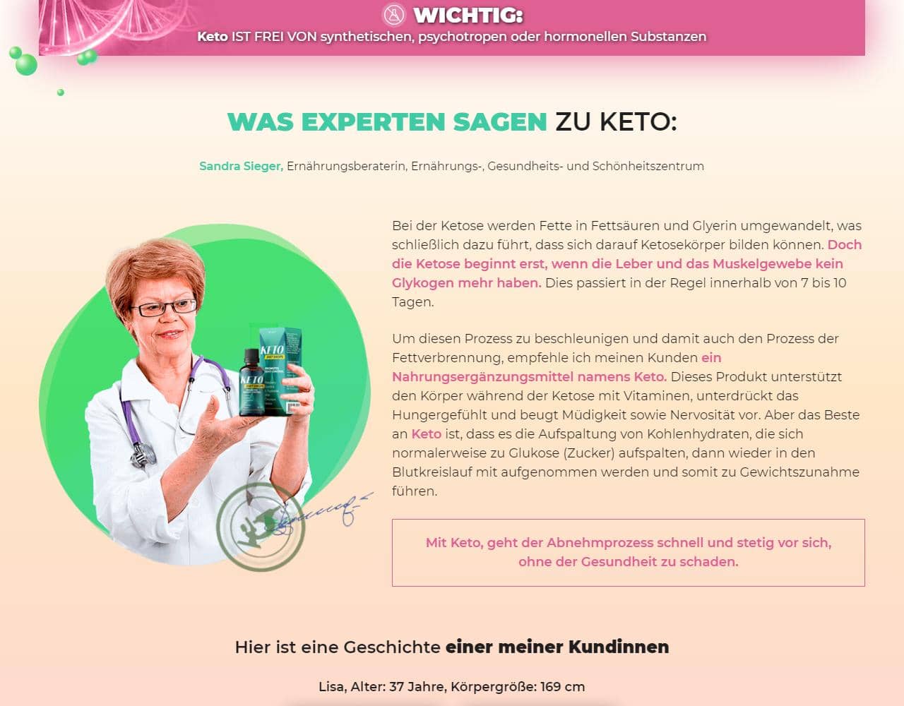 Wichtig: Sie haben genug von Übergewicht und wollen es mit Hilfe von Keto loswerden? Es wird Ihnen gelingen, aber nur unter 1 Bedingung: Sie müssen sich genau an die Empfehlungen des Herstellers halten. Deren Nichteinhaltung garantiert keine Gewichtsabnahme und kann auch Ihrer Gesundheit schaden. Nur die Einhaltung der Anweisungen zum Medikament Keto wird Ihrem Körper Schlankheit, Trimmheit, Gesundheit und Ihnen - Selbstvertrauen - zurückgeben!